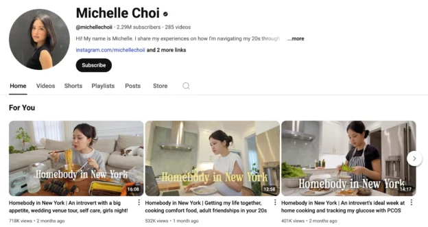 Interestingly, her breakout moment came in 2019. She renamed her NYC-focused series to “Living Alone Diaries,” and just like that — her average views doubled. Today, nearly every video in that series garners over a million views.